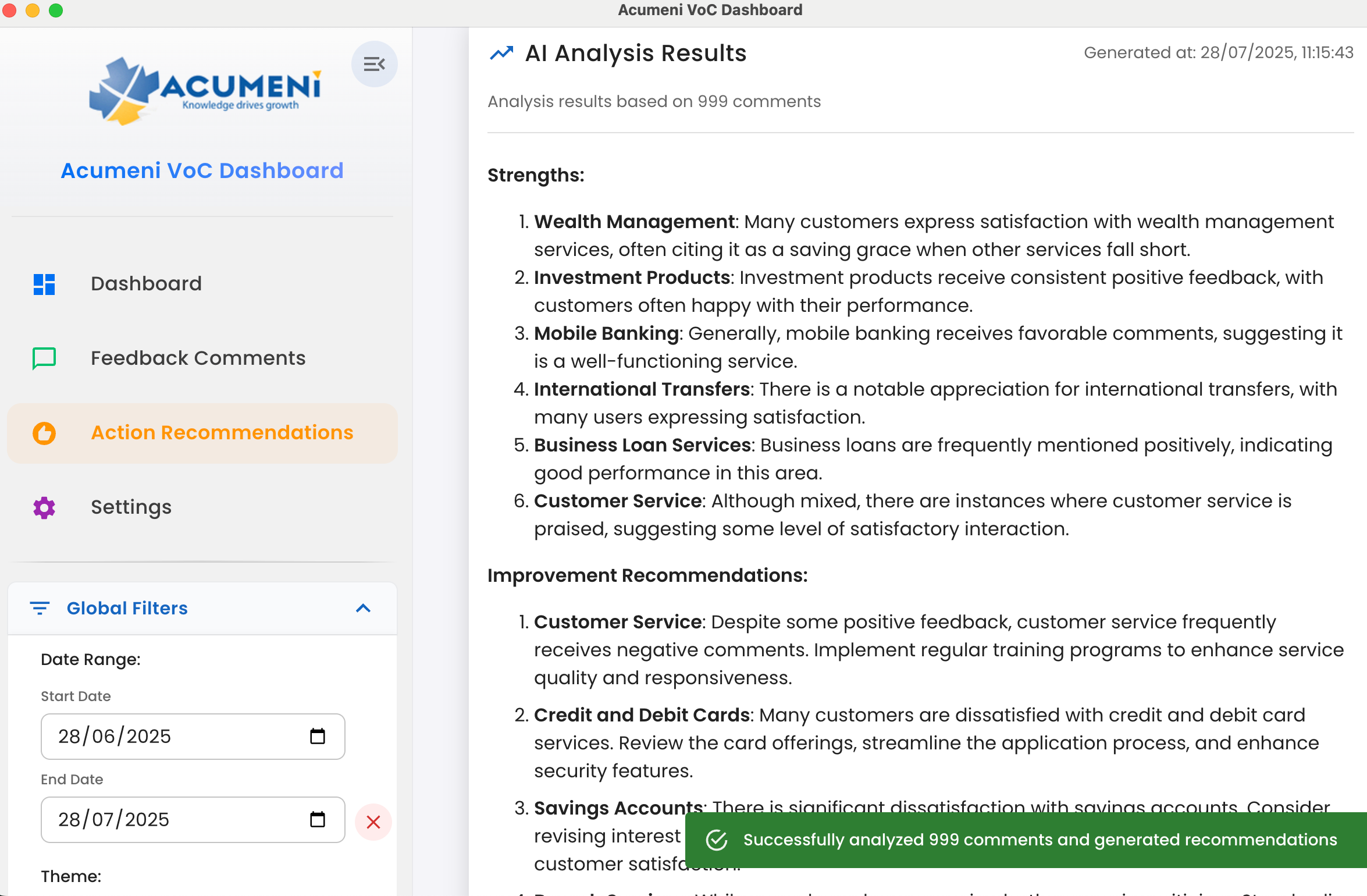 Acumeni’s NEW Voice of the Customer Desktop Application requires an active Feedback Hub Account for real-time feedback responses retrieval, analysing and reporting.
